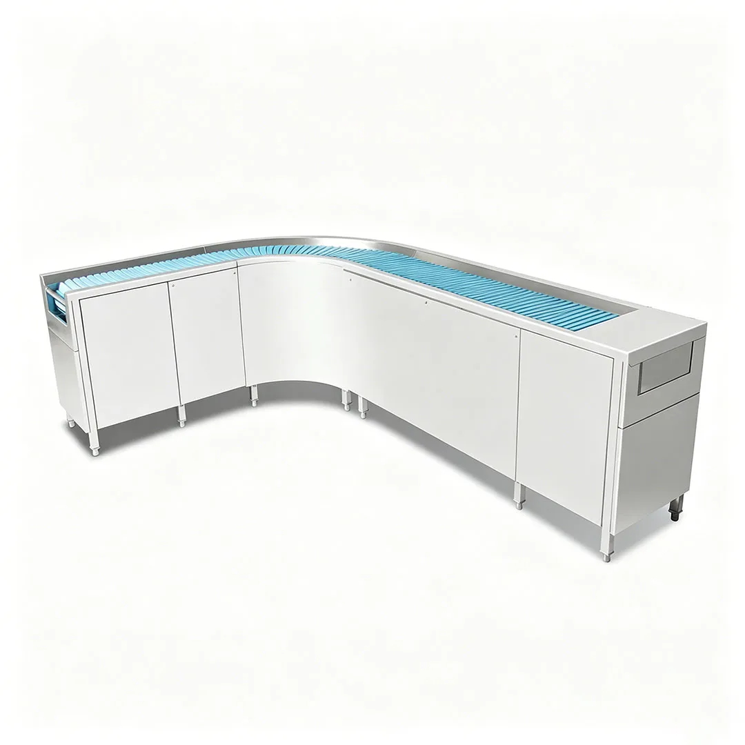 Pusat Disinfeksi Peralatan Makan: Digunakan sebagai peralatan pendukung jalur desinfeksi peralatan makan profesional, mengangkut peralatan makan daur ulang melalui proses pembersihan, disinfeksi, dan pengeringan, memastikan pengangkutan yang stabil dan higienis.